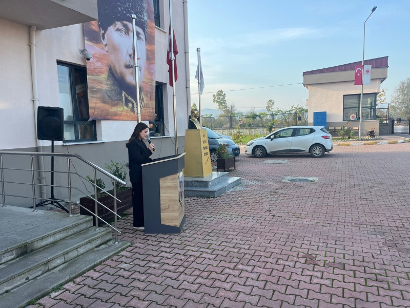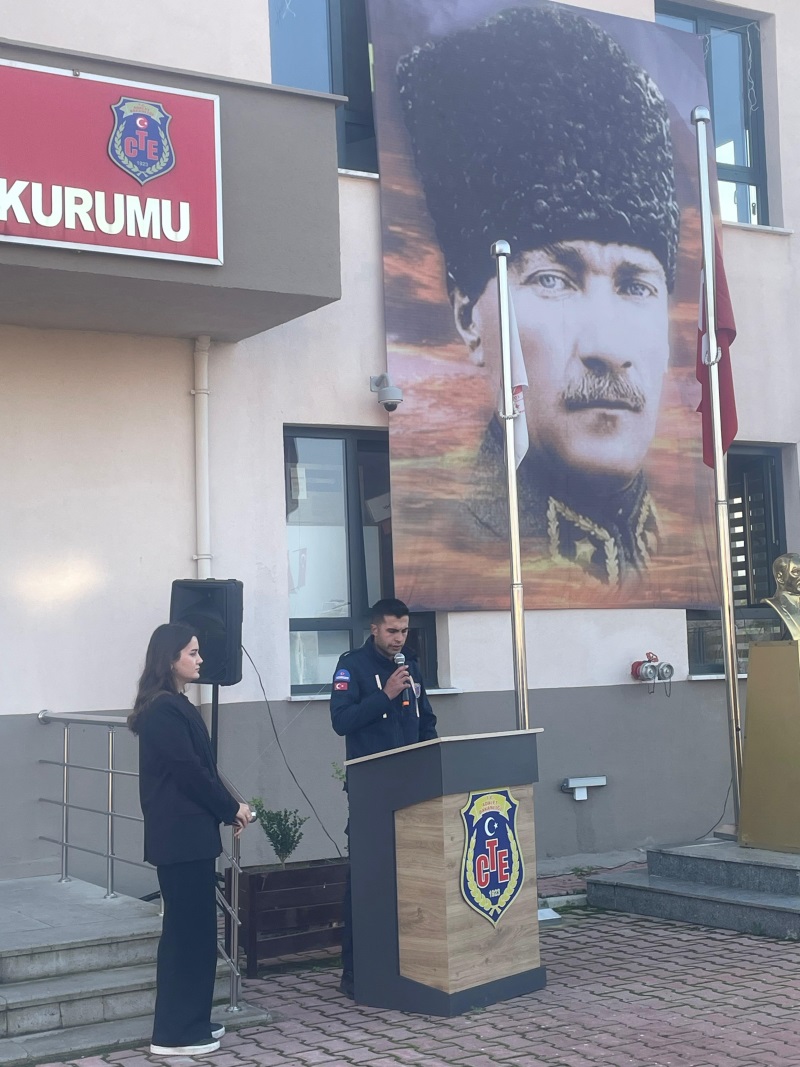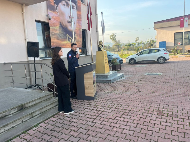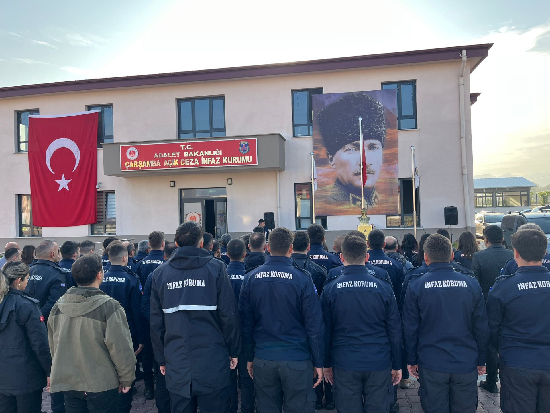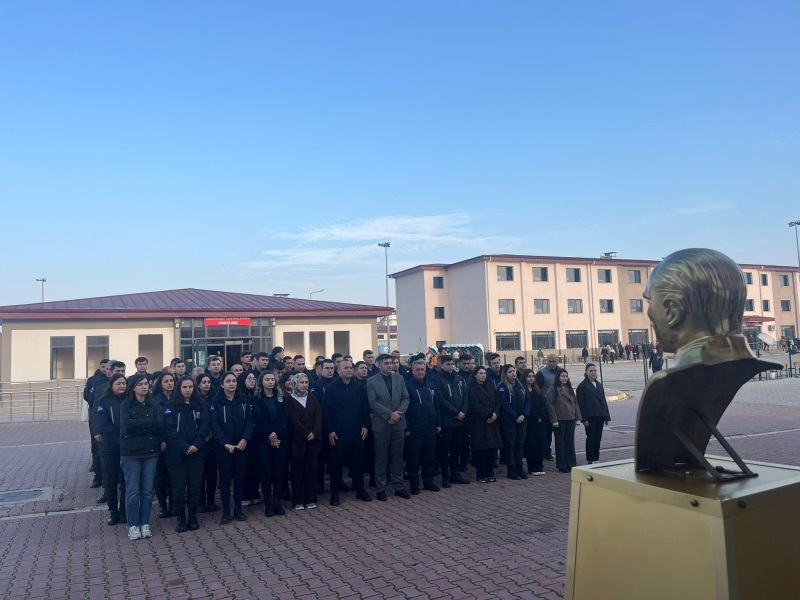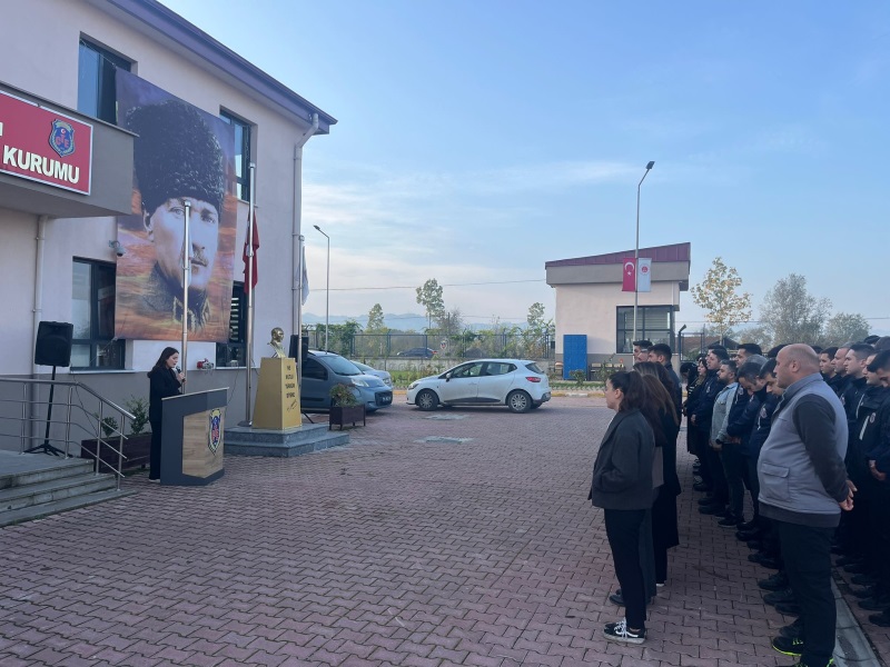 Çarşamba Açık Ceza İnfaz Kurumumuzda 10 Kasım Atatürk’ü Anma Programı gerçekleştirilmiştir. Cumhuriyetimizin kurucusu Gazi Mustafa Kemal Atatürk, aramızdan ayrılışının 87. yıl dönümünde kurumumuzda düzenlenen törenle anıldı. Tören, günün anlam ve önemine ilişkin konuşmanın kurum öğretmeni Ecem Gözde TEMİZ tarafından yapılmasıyla başladı. Ardından İnfaz ve Koruma Memuru İsa USTA, Atatürk’e duyulan sevgi ve minneti dile getiren anlamlı bir şiir okunmasıyla devam etti..Programın sonunda, Gazi Mustafa Kemal Atatürk’ün aziz hatırası önünde saygı duruşunda bulunularak İstiklâl Marşı okundu. Tüm personelin katılımıyla gerçekleştirilen tören, büyük bir saygı ve duygu yoğunluğu içerisinde tamamlandı.