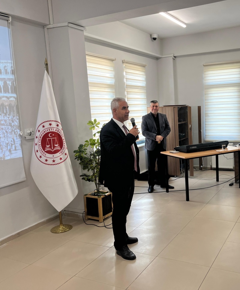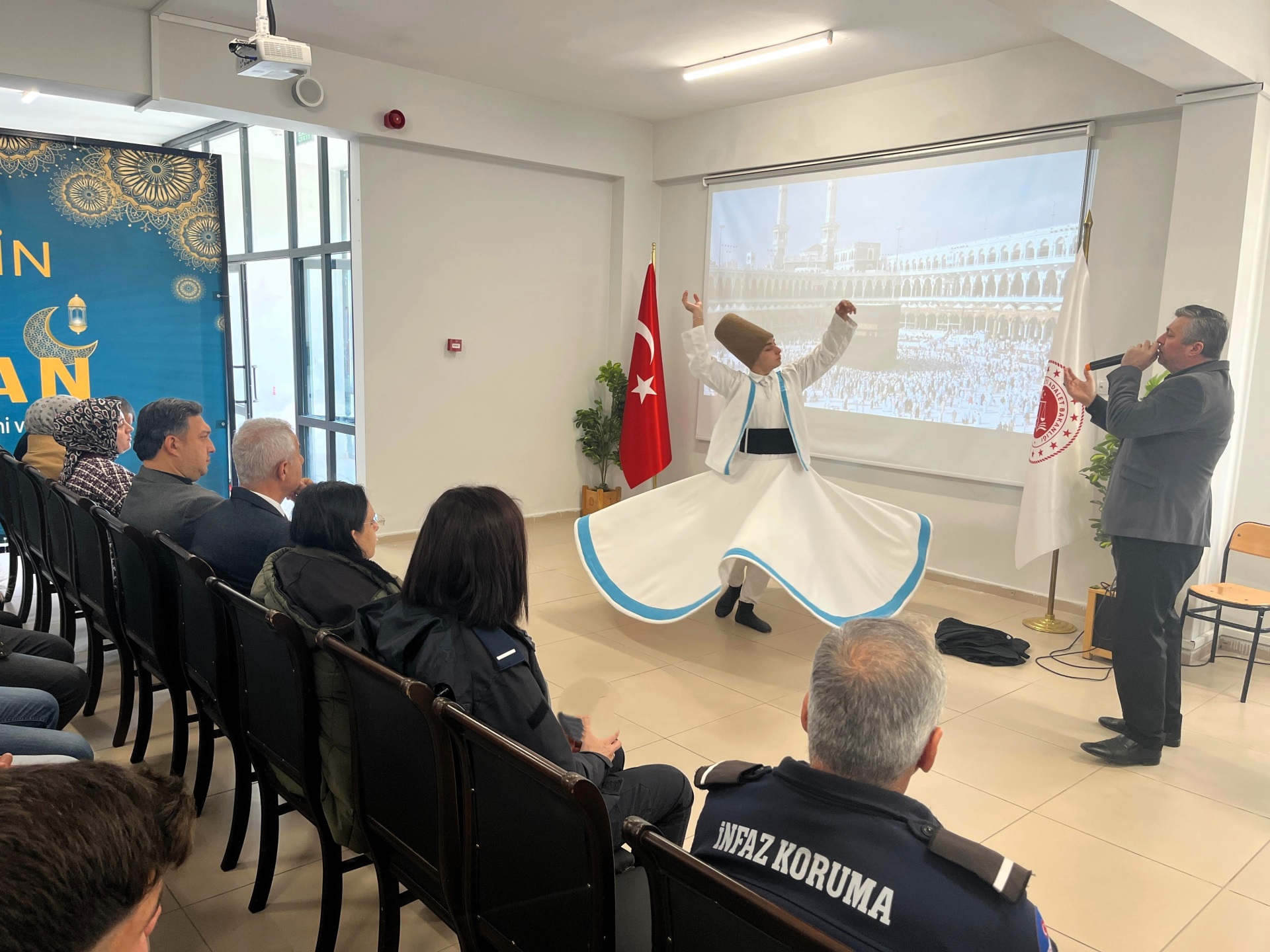 Çarşamba Açık Ceza İnfaz Kurumumuzda Miraç Kandili programı gerçekleştirildi. Recep ayının 27. Gecesinde gerçekleşen İsra ve Miraç; Sevgili Peygamberimizin önce Mescid-i Haram'dan Mescid-i Aksa'ya, oradan da Yüce Mevla'nın sonsuz ayet ve kudretinin müşahede etmesi için semaya kadar uzanan içerisinde pek çok ilahi hikmet ve bereketi barındıran manevi bir yolculuktur. Öğleden önce gerçekleştirilen kandil programı, Miraç Kandili ile ilgili kısa bir tanıtım videosu ile başlayıp, Din Hizmetleri Uzmanı Mehmet YAVUZ'un günün maneviyatını ve bereketini anlatan konuşmasıyla devam ederek emekli İmam-Hatip İdris GÜLÇİÇEK'in Kur'an ziyafeti, ilahi dinletisi, Semazen Buğra GÜLÇİÇEK tarafından da Semazen gösterisi icra edilip Kurum Müdürümüz Hasan Hüseyin ÖZDAĞ'ın günün anlam ve önemine dair kısa bir konuşması ile kandil programında emeği geçen herkese teşekkür ederek programımız sona ermiştir.